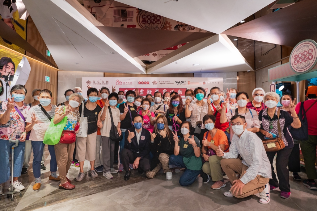 Over 80 elderly attendees participate in person at the“Discover Emperor, The Celebration Walk” virtual charity tour elderly session, with an unprecedented remote connection to over 800 elderly from two charitable organisations' elderly centres. Emperor Entertainment Group’s artistes, Hins Cheung and Vincy Chan, surprise the guests as virtual tour guides